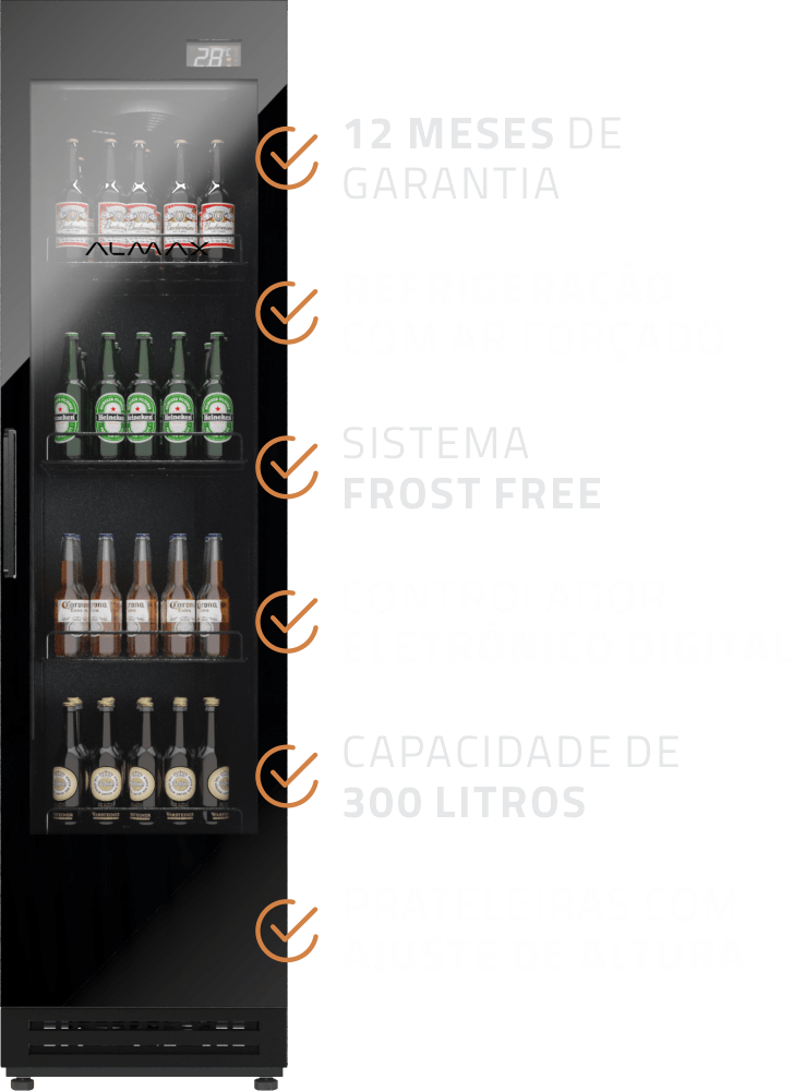A Cervejeira Almax oferece uma solução de refrigeração ideal para armazenar suas cervejas. Com um sistema de refrigeração com ar forçado e degelo automático Frost Free, ela garante a temperatura ideal sem acúmulo de gelo. A Cervejeira Almax possui ajuste de altura com pés niveladores de até 1,5 cm, iluminação em Led para visualização clara e fácil.